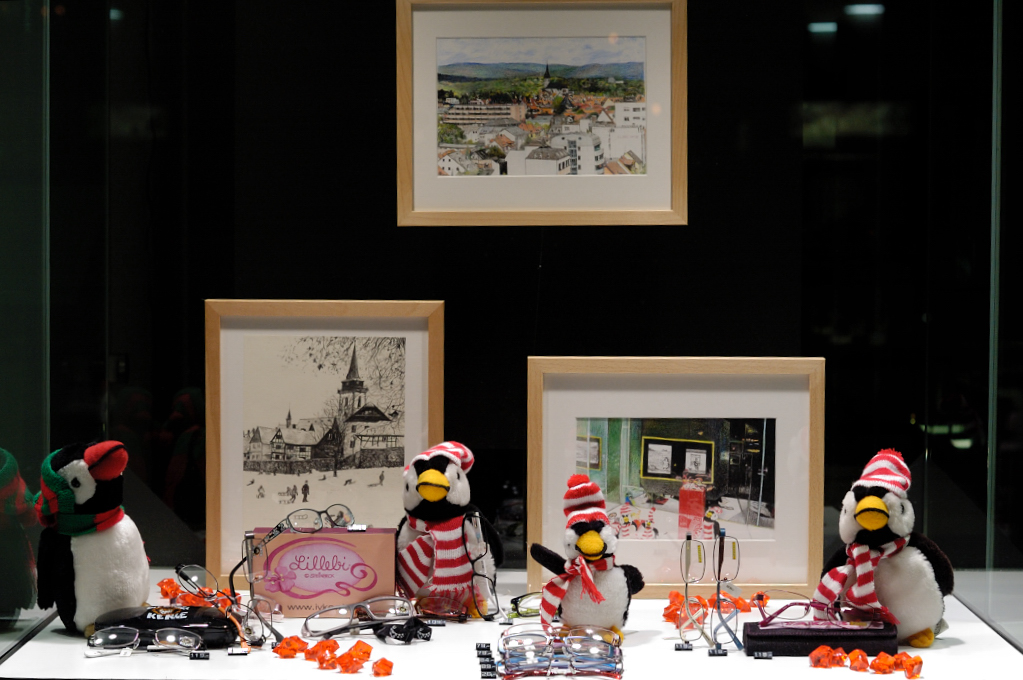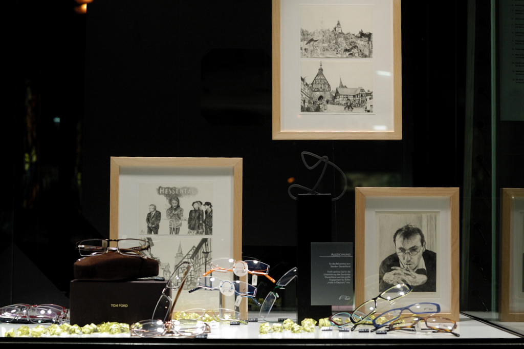 Der Oberurseler Andreas Räsch stellt 12 Bleistiftzeichnungen mit Motiven aus Oberursel und Umgebung aus, die zugunsten des Opferdenkmals erworben werden können. Zu sehen sind sie im Januar 2012 in den Schaufenstern von Klinke Optik, Adenauerallee 26, 61440 Oberursel.