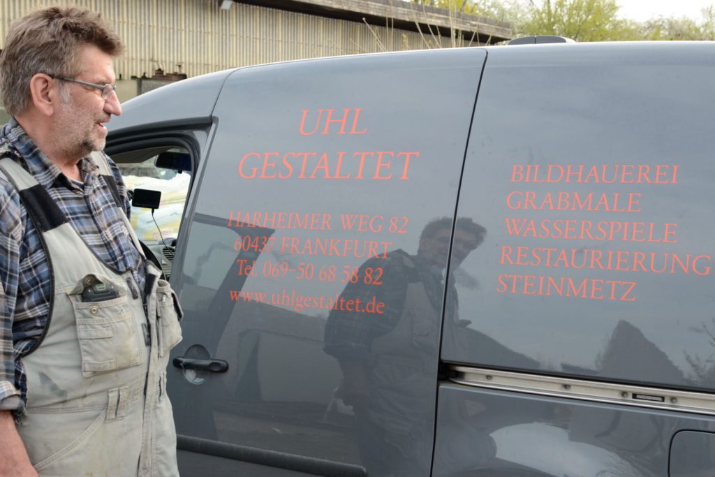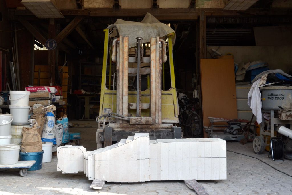 Bei einem Kennenlerntreffen mit dem Bildhauer Reiner Uhl, ist der Funke gleich übergesprungen. Schon drei Tage nachdem wir ihm den Auftrag erteilt hatten, wurde der Stein für die nächste Figur, der bisher auf dem Waldfriedhof lagerte, in seine Werkstatt geholt.