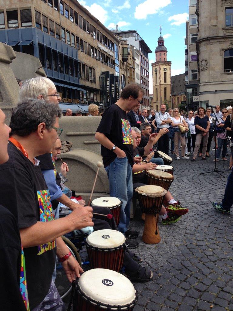 Bei der Feierstunde in Frankfurt, setzte die Oberurseler Trommelgruppe ebenso berührende Akzente.
